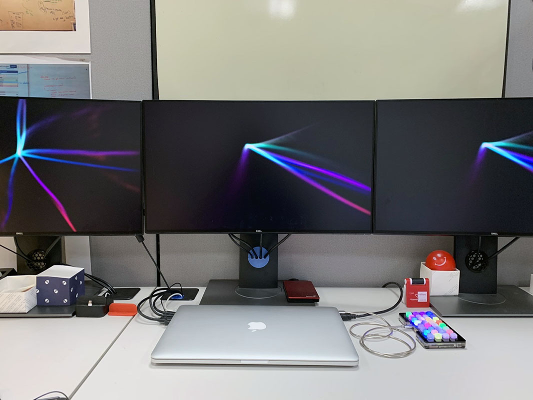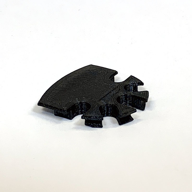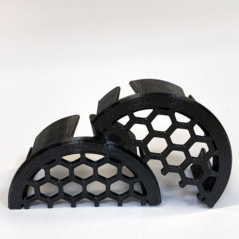 Armed with this knowledge, I went back to my computer and didn't touch the project for a while. Luckily, I had recorded the measurements in a file so when I restarted my model from scratch I didn't have to remeasure the stand. Starting with the hole radius in the rear and projecting upward at the 4-degree angle we measured on the Contura. The rest of the model came together smoothly, having been designed once before. After living with this upgraded cable management situation for a little while, I decided that my two side monitors needed some attention as well. I wanted a different design, one that was visually more interesting. After watching a few tutorials on YouTube I settled on a hexagon pattern for the front while keeping the rest of the design largely the same. When choosing a color to print in, I chose black specifically so that it would blend in better with the stand. I am very pleased with the results. After being pressed together the parts fit together very well to create the illusion of being one solid piece. To finalize the set I printed another of the hexagon caps and a cable guide in black. I think I can finally consider my cables managed, at least above the desk.