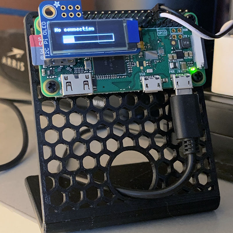 The code, like much of the project, is fairly straight-forward once the pieces are found. When the program starts it initializes the relay's reference signal to high. Receiving a high signal "opens" (or turns on) the module's normally closed (off) outlets, powering the modem and router. After waiting a few minutes to make sure the modem and router have a chance to boot up, the code enters a loop. Since everything has already been initialized, this loop will run as long as the program is running. First, it tries to open a connection to the internet. If it is successful, an image is shown on screen, providing the connection status, how many times the program has attempted to restart the router and modem, the date and time of last connection check as well as the Raspberry Pi's IP address and the WiFi network name. If the connection to the internet fails, the screen displays "No connection" and a status bar. Attempts to reconnect are made for 60 seconds. If the status bar fills before an internet connection is established a power cycle is initiated. The reference signal to the relay module is set to low, closing (turning off) the relay. After waiting 15 seconds, power is restored and the modem and router begin their power-up sequence. Since I don't have a reliable way to know when they have restarted, the code is told to wait for three minutes. During this time a status bar on the display shows the counter's progress. Having done some testing, the timing seems like a pretty good fit. With the connection (hopefully) restored, the program will once again, display the connection information, though now with the resets incremented by one.