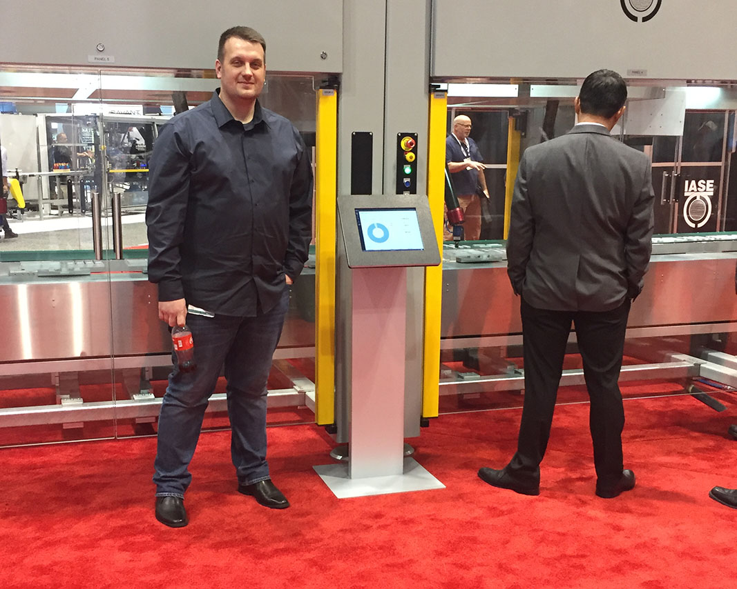 The interface, when completed, featured a mobile-first web page running on an iPad tablet in a kiosk. Without a physical connection, users could view current and historical run-time statistics, read maintenance reports and even submit an order for fulfillment. All orders that were submitted would appear on the machine's main HMI screen so that a machine operator could queue the order for processing.